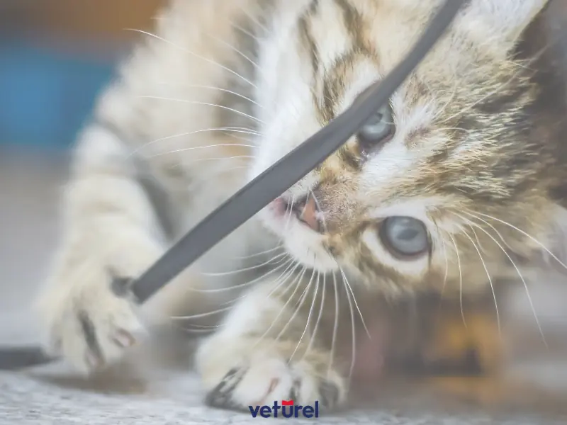 Oyunla Dikkat Dağıtma: Kedinizi kablo çiğnerken yakalarsanız, onların ilgisini interaktif oyunlarla, özellikle de çubuklu veya tırmalama oyuncaklarıyla başka yöne çevirin. Enerjiyi güvenli ve üretken bir aktiviteye yönlendirmek için oyun zamanı önemlidir.